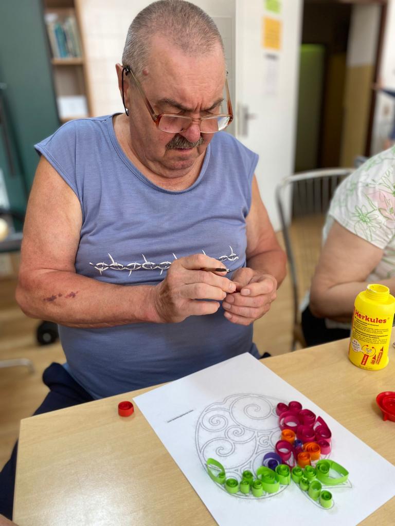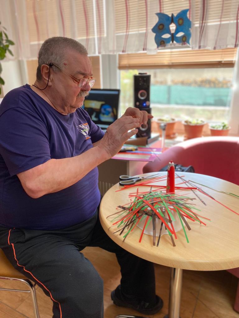 V tejto dobe nemôžeme nespomenúť pána Jána Čonku, nášho obyvateľa, ktorý žije v zariadení rok. Nielen my, ale aj spoluobyvatelia sú mu vďační za jeho pozitívny prístup k životu, za jeho snahu a odhodlanie popasovať sa s problémami a za to, že svojou aktívnou prácou a dielami teší všetkých nás. Čokoľvek začneme tvoriť, všetko ho zaujme a teší. Veľa voľného času venuje aktivitám, ktoré prispievajú ku skrášleniu interiéru a exteriéru zariadenia a my sme mu za to vďační, no posúďte sami...