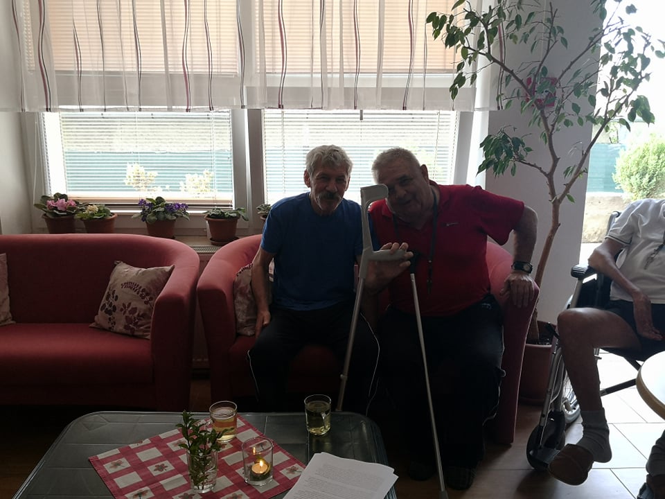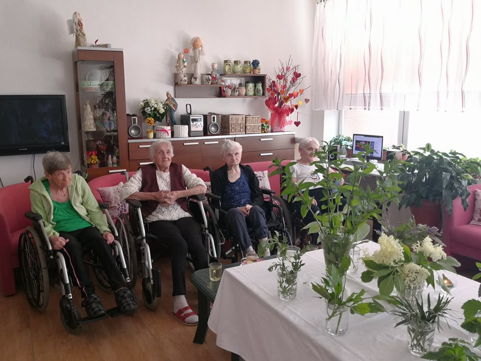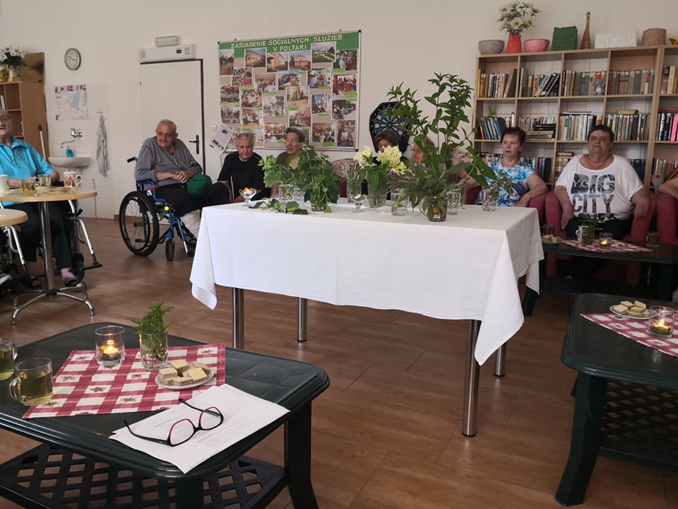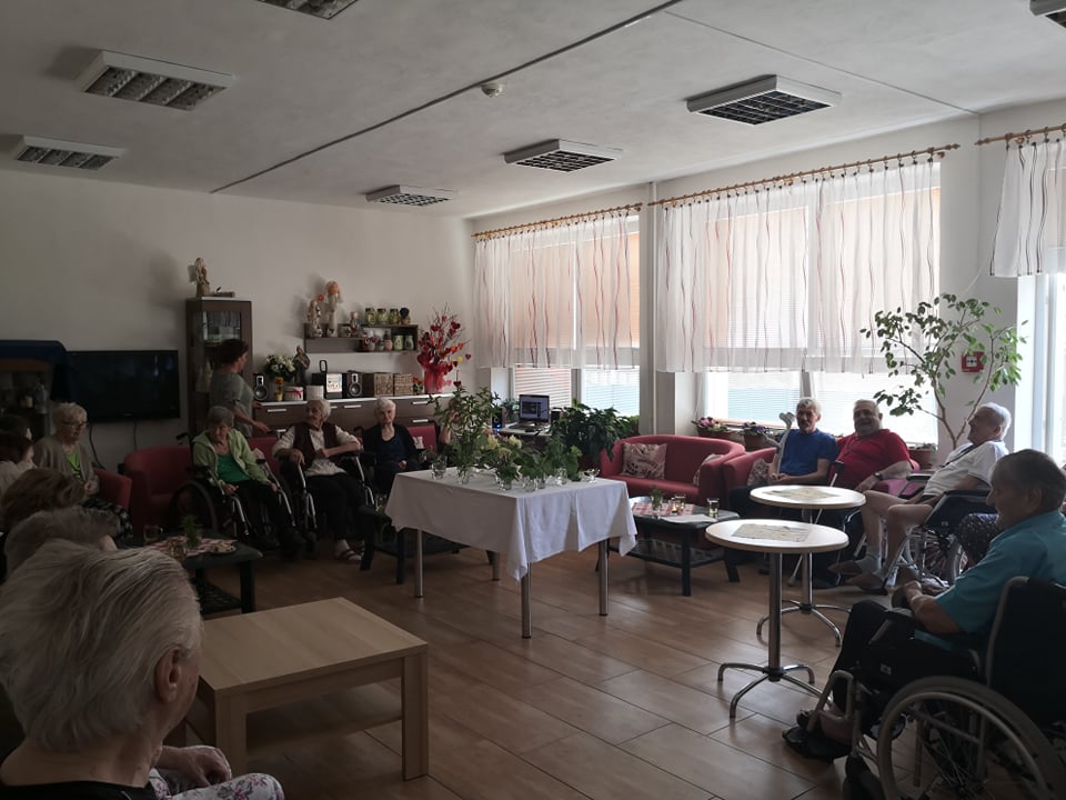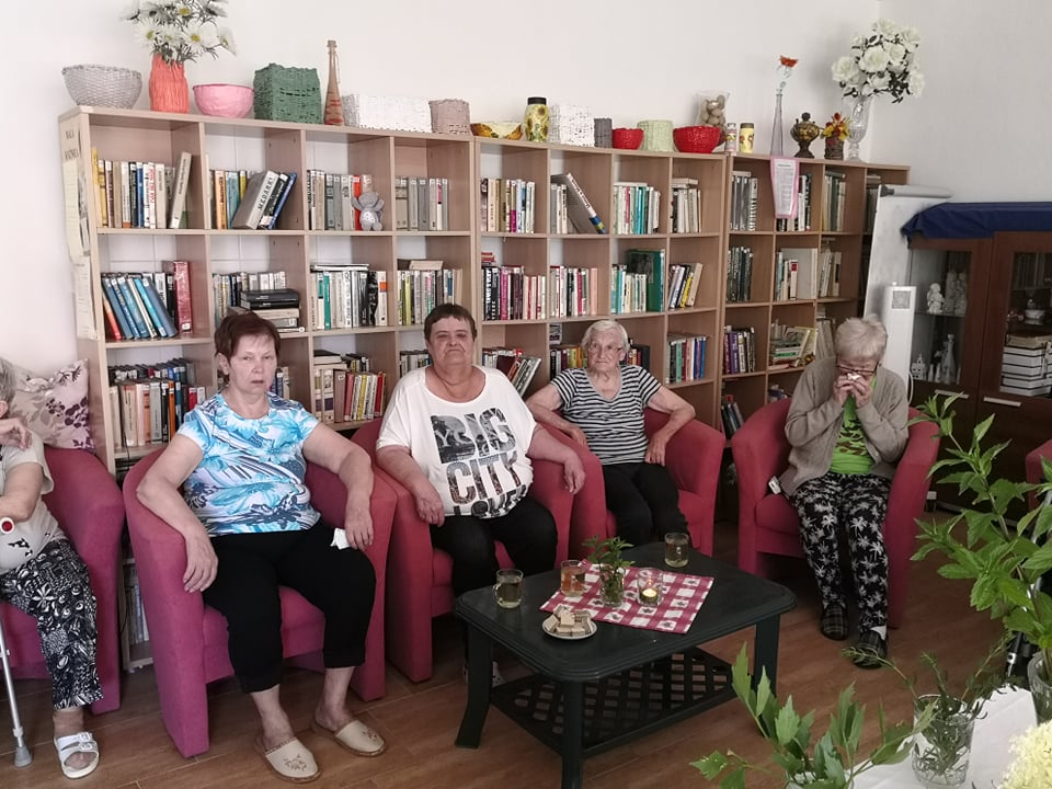 Vôňa čerstvo natrhaných byliniek a chutný bylinkový čaj rozvoňali spoločenskú miestnosť. Obyvatelia si bylinky prezerali, skúmali ich vôňu a postupne sa rozpamätávali na ich názvy a liečivé účinky. Príjemné dopoludnie sme ukončili prednáškou o pitnom režime v letnom období.