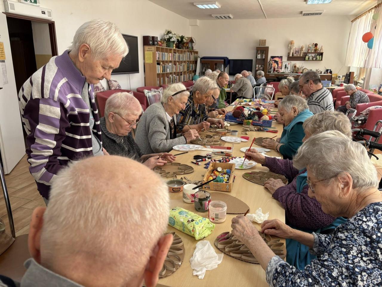 Súčasťou aktivít boli tvorivé dielne, kde si klienti vlastnoručne vyrábali jarné a veľkonočné dekorácie. S veľkým nadšením a sústredením sa venovali maľovaniu ozdôb, pričom vznikali krásne a originálne výrobky, ktoré skrášlia priestory zariadenia.