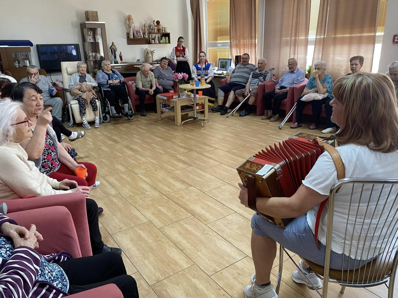 Užili sme si krásne chvíle plné hudby, spevu a tanca.Zaspievať a zahrať na heligónku prišla pani Elena Sýkorová. Sestry Porubiakové potešili spevom a tancom, spoločne sme sa učili kroky aj slová ľudových piesní. Ďakujeme za ochotu, radosť a energiu, ktorú priniesli medzi nás.
