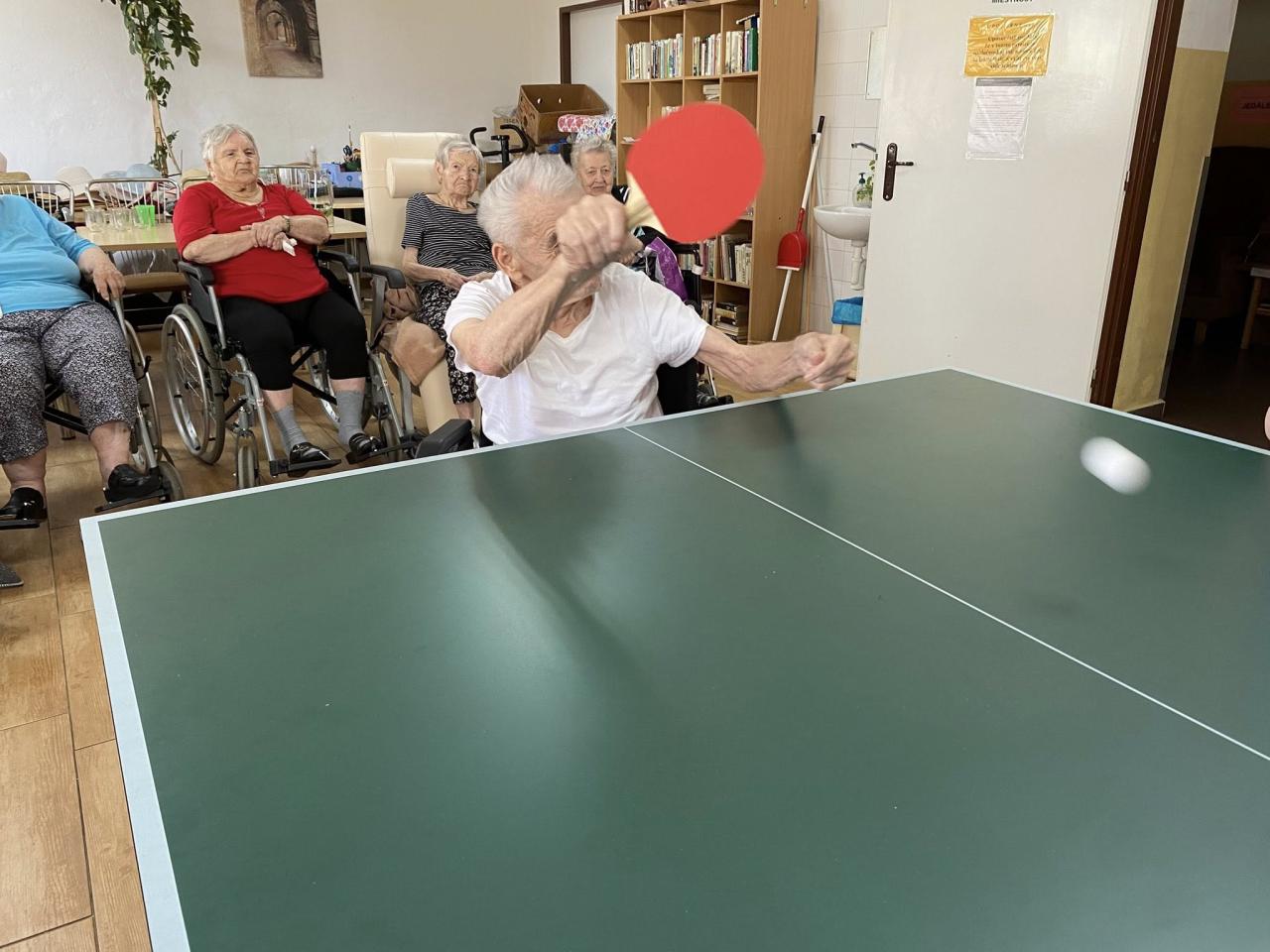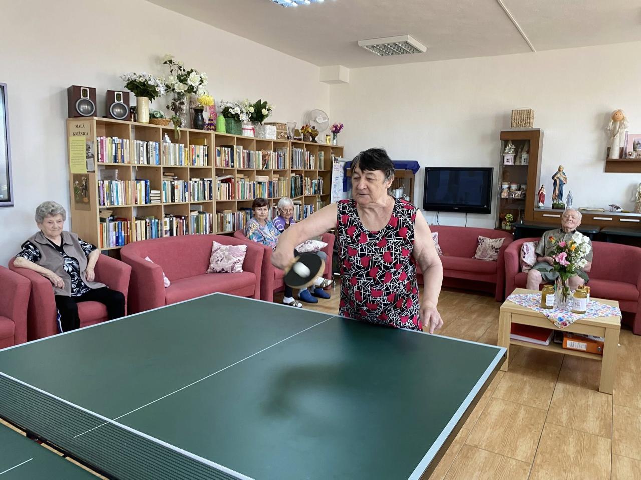 Stolno tenisový turnaj vždy prináša veľa zábavy a smiechu. Popri tom si obyvatelia trénujú pozornosť, sústredenosť a koordináciu pohybov.