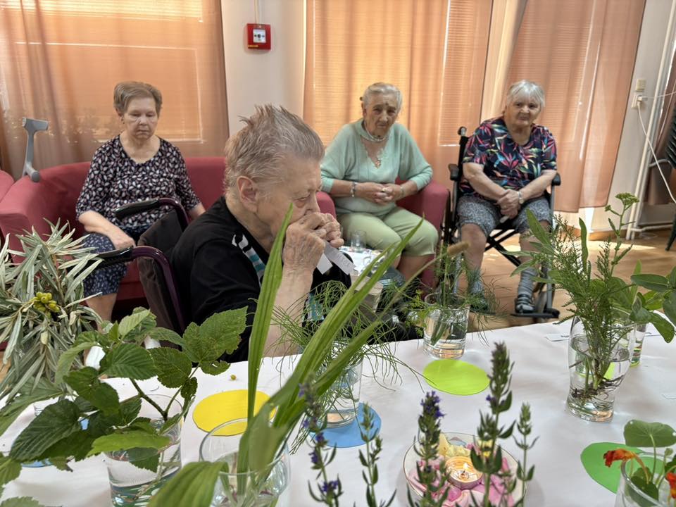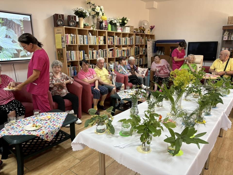 Leto nám prinieslo nové možnosti trávenia spoločného času v našom zariadení rodinného typu. Záhradná terapia pod slnkom nám dodáva energiu do nastávajúcich teplých dní. Už len pozorovanie rastlín, farieb, vôní podporuje duševnú pohodu a má terapeutické účinky.V čase pred nocou svätého Jána, s ktorou sa spája množstvo tradícii a je, čo sa týka byliniek považovaná za magickú, sme si s obyvateľmi pripomenuli toto bohatstvo prostredníctvom využitia techník fytoterapie. Naši obyvatelia spomínali, zdieľali navzájom rady, recepty, skúsenosti. Atmosféru spríjemnila aromaterapia, nechýbalo občerstvenie s príchuťou byliniek a bazový nápoj. Príprava bazového sirupu prebehla podľa dávneho receptu postupne a výsledok potešil a chutil všetkým.