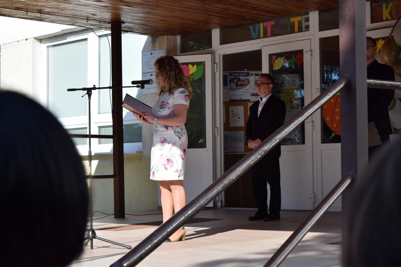 „V škole sa vďaka výborným učiteľom naučíte takmer všetko, čo potrebujete. Dennodenne Vás pripravujú na život a zato im patrí naša obrovská vďaka. Som presvedčená, že vo svojich učiteľoch veľmi rýchlo nájdete oporu a dobrých a spoľahlivých pomocníkov.“ povedala prednostka v úvode.