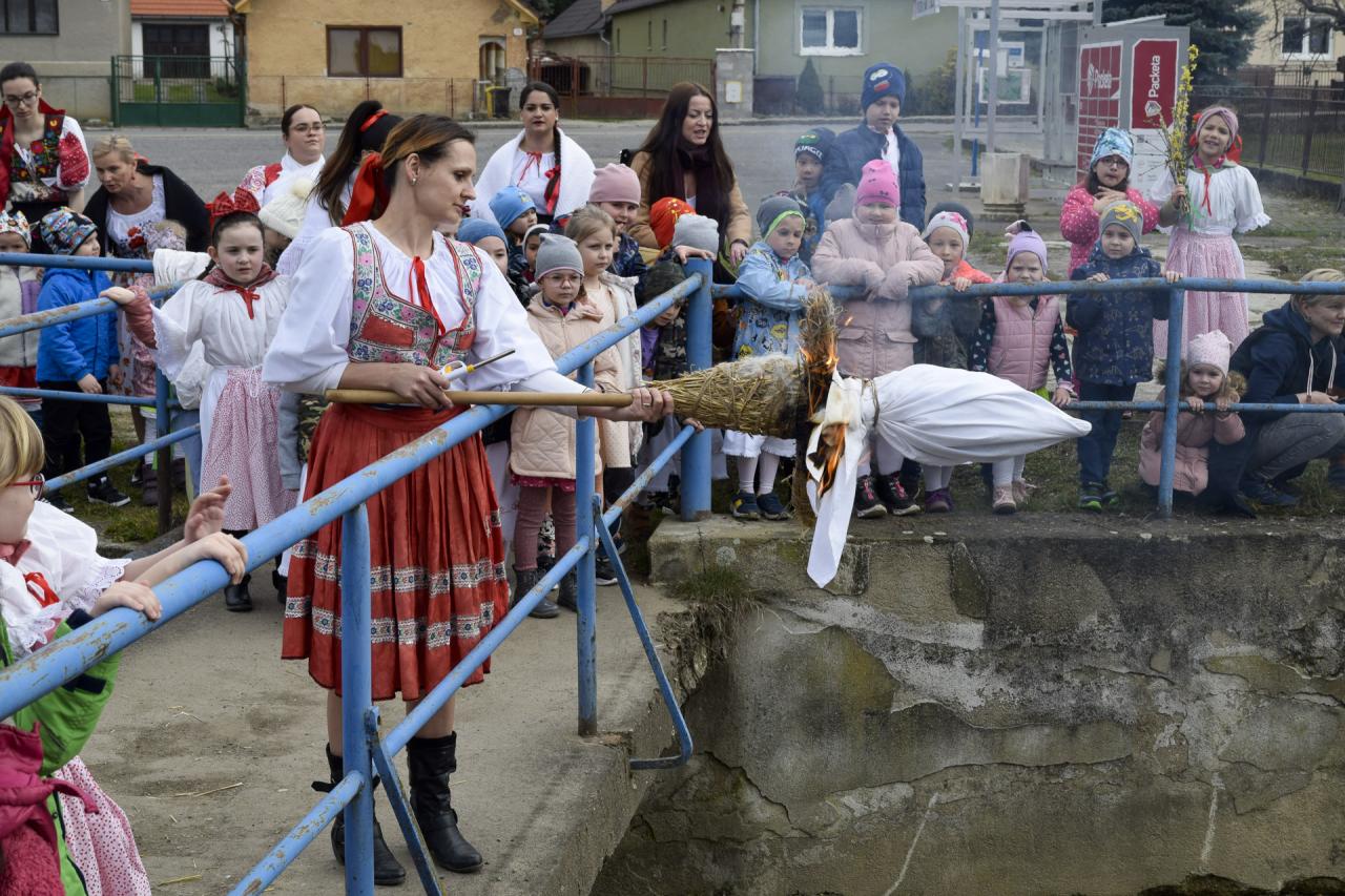 Jedným z nich je vynášanie Moreny, slovanskej bohyne smrti a zimy. Predstavuje ju slamená figurína, ktorú detičky s pani učiteľkami vyniesli, zapálili a hodili do potoka.