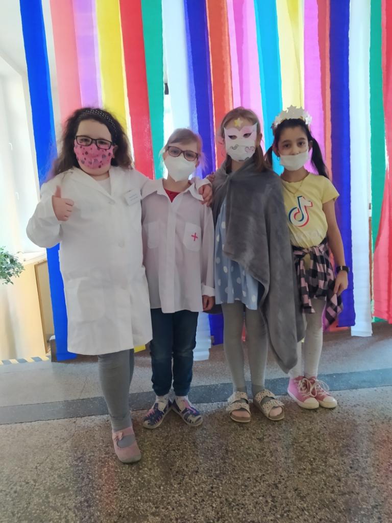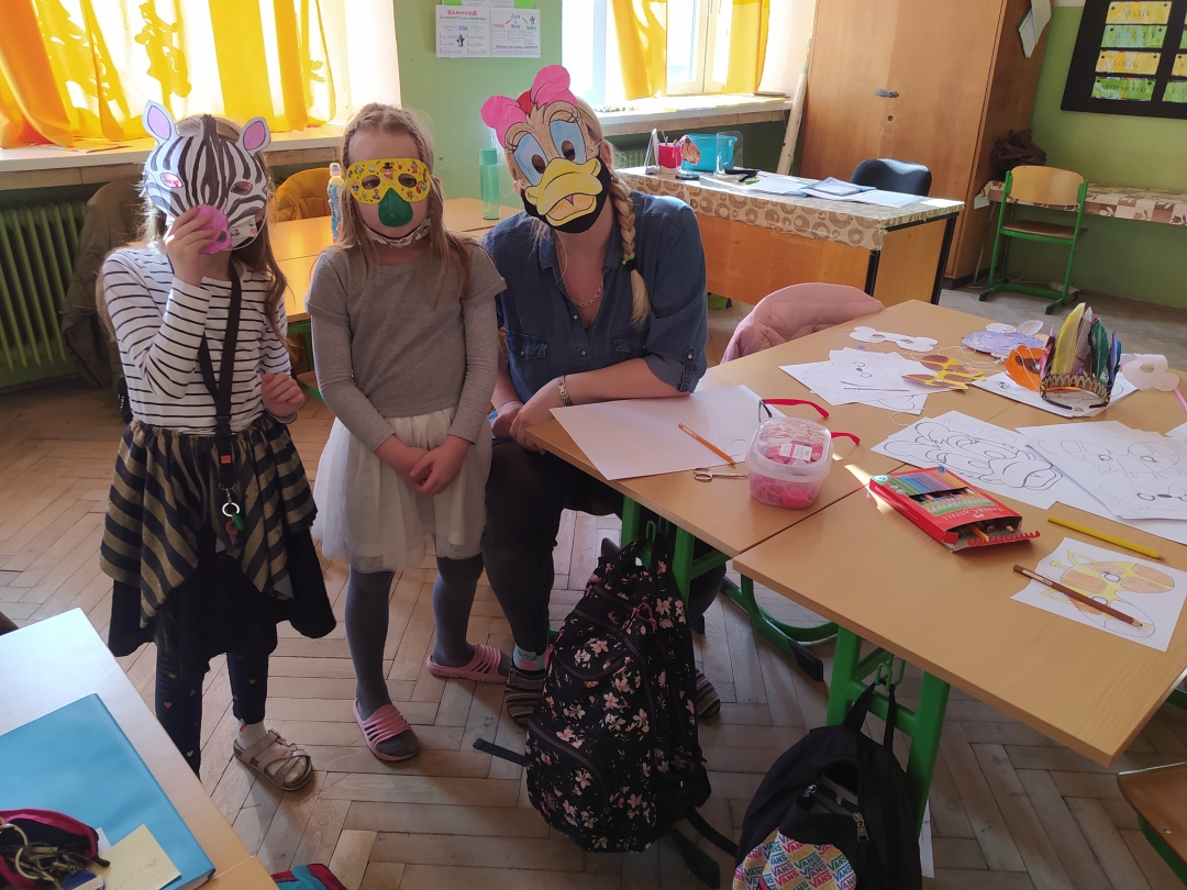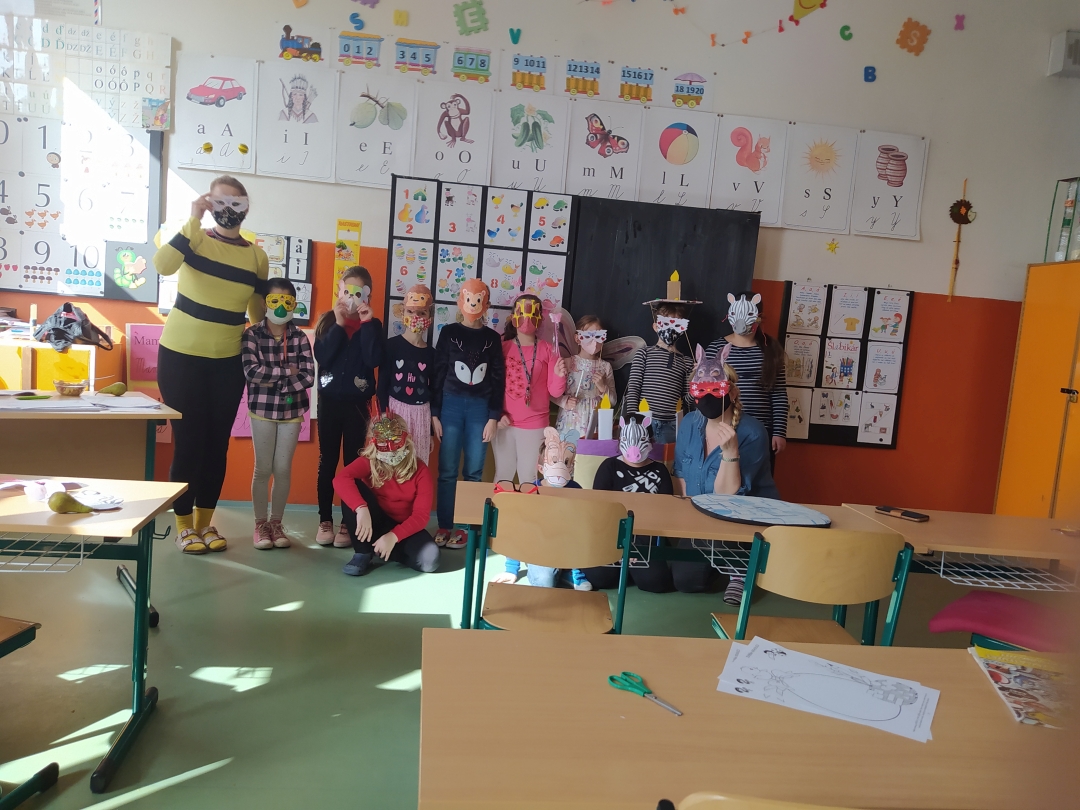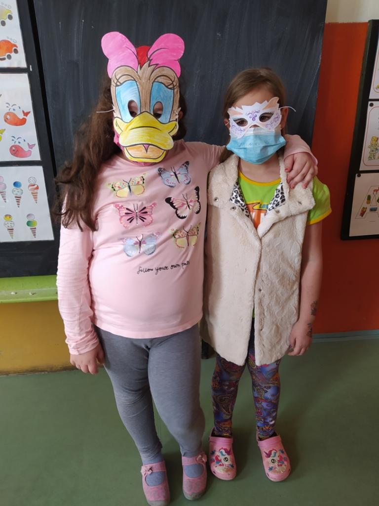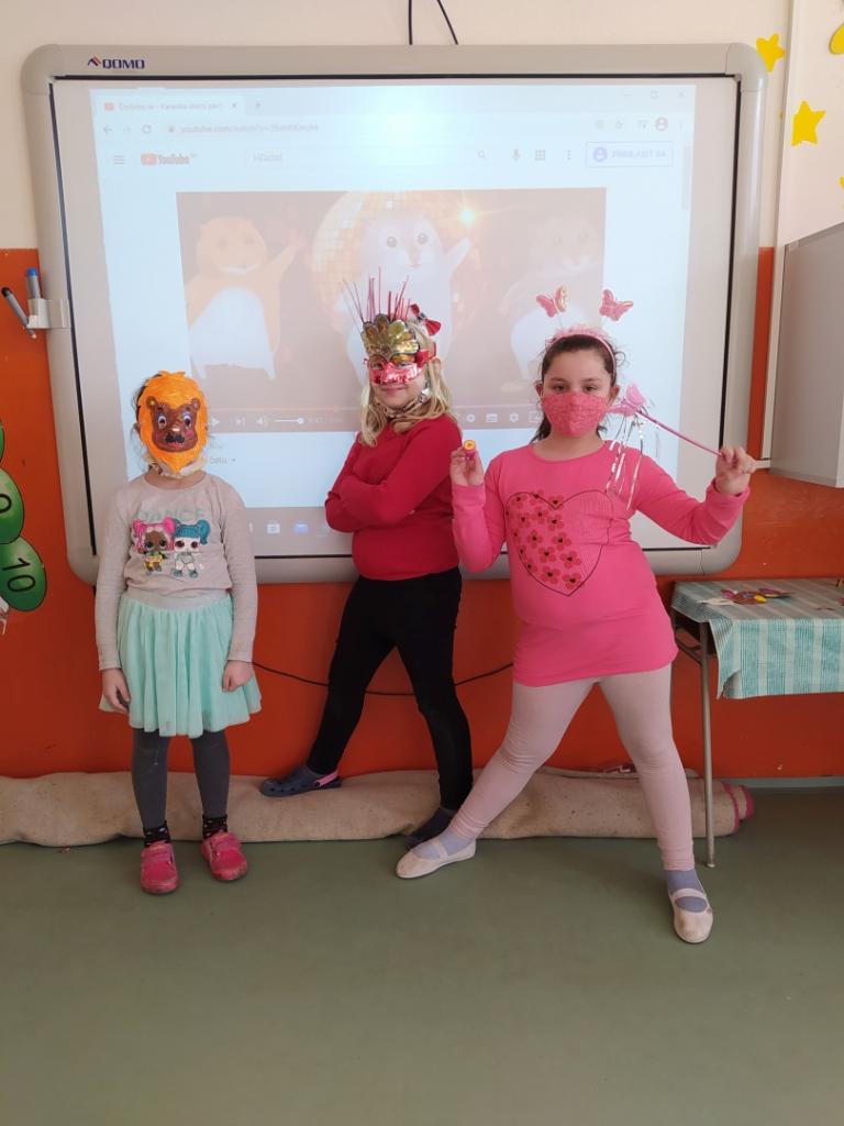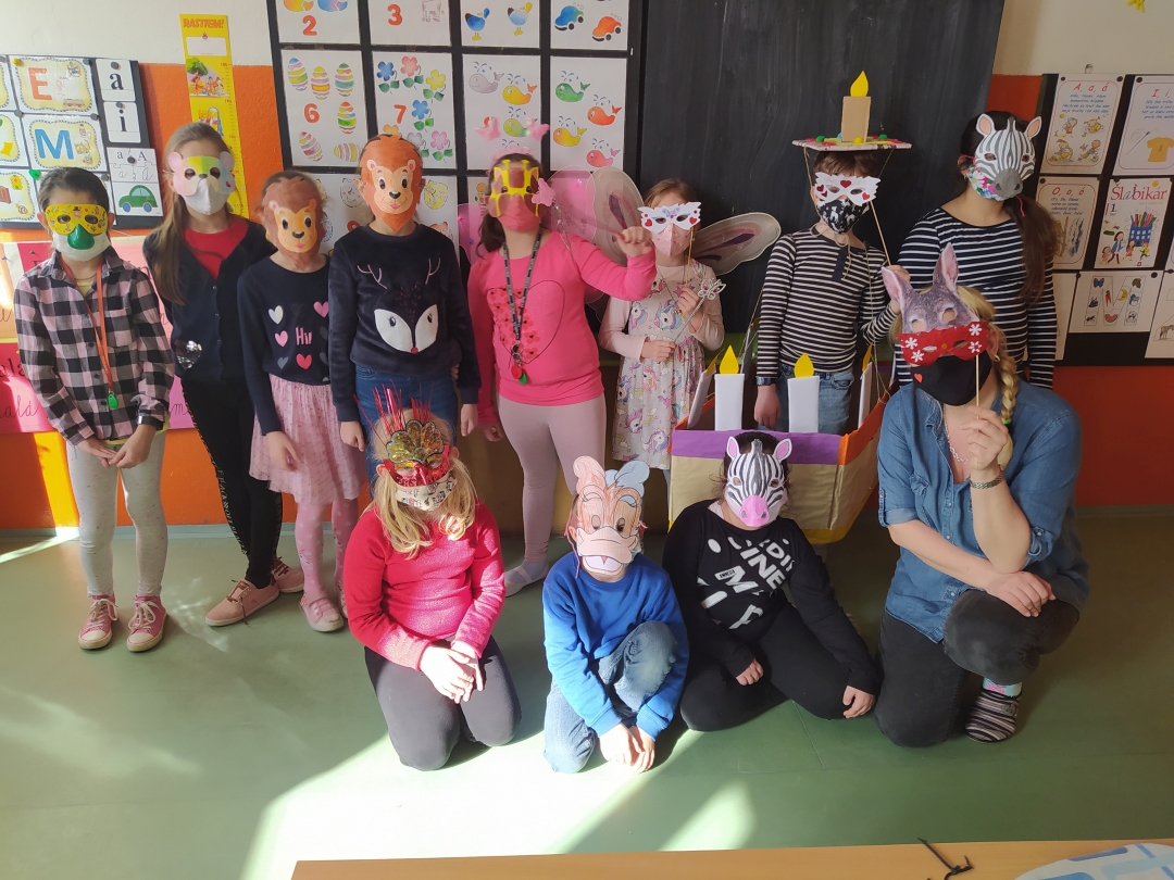 V každom oddelení ŠKD si deti s pani vychovávateľkou pripomenuli tradície tohto obdobia. Zhotovili si masku na tvár, podarili sa im vytvoriť rozličné zvieratká, rozprávkové postavičky a škrabošky. Nakoniec sa deti prezliekali do kostýmov, vo svojej triede hrali súťaže a zábavné tance. Každá maska bola odmenená sladkou maškrtou. Medzi najobľúbenejšie aktivity deti zaradili maľovanie na tvár. Naše masky si môžete pozrieť v galérii.