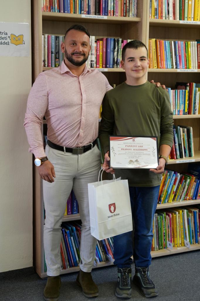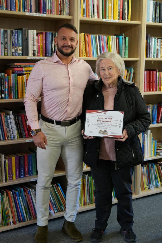 Program pokračoval v mestskej knižnici, kde boli pri tejto príležitosti ocenení dvaja najlepší čitatelia roka 2025. V kategórii dospelí si ocenenie prevzala osemdesiatročná pani Eva Gortová a v kategórii detí trinásťročný Filip Malček. Ich čitateľská aktivita je dôkazom toho, že vzťah ku knihám nepozná vekové hranice.