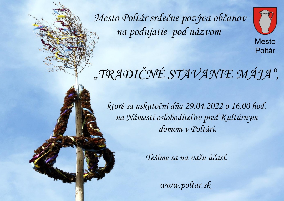 Stavanie mája v Poltári sa uskutoční dňa 29. apríla v piatok o 16.00 hod. na Námestí osloboditeľov pred KD v Poltári. Všetci ste srdečne vítaní!