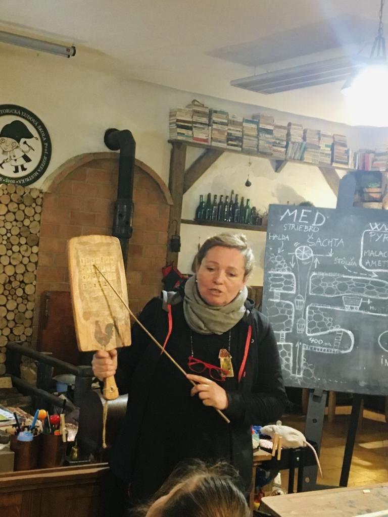 V exteriéri prešli žiaci malým náučným baníckym chodníkom, pozreli si štôlňu s baníckymi škriatkami – permoníkmi, videli Banícky orloj, či Cisársku štôlňu. V dobovom obchode „Jedivo a potrebné“ si mohli žiaci zakúpiť suveníry.