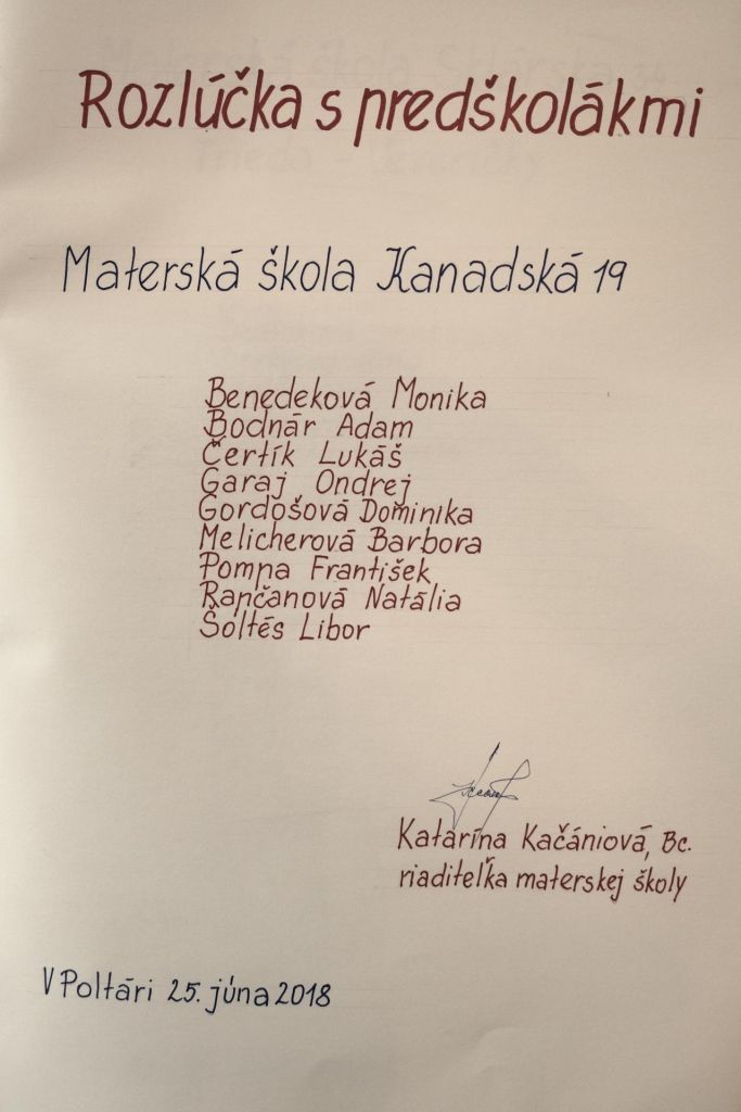 Rozlúčka so škôlkarmi - MŠ Kanadská
