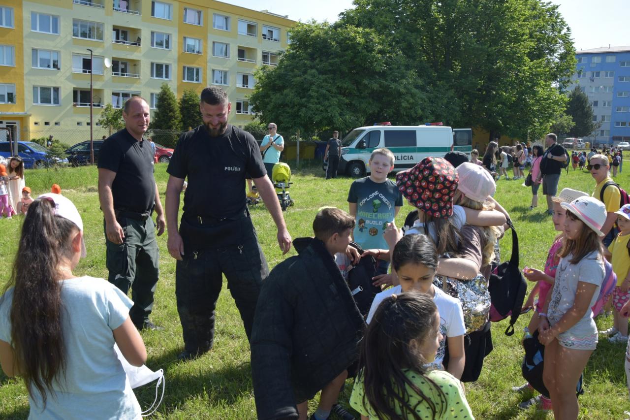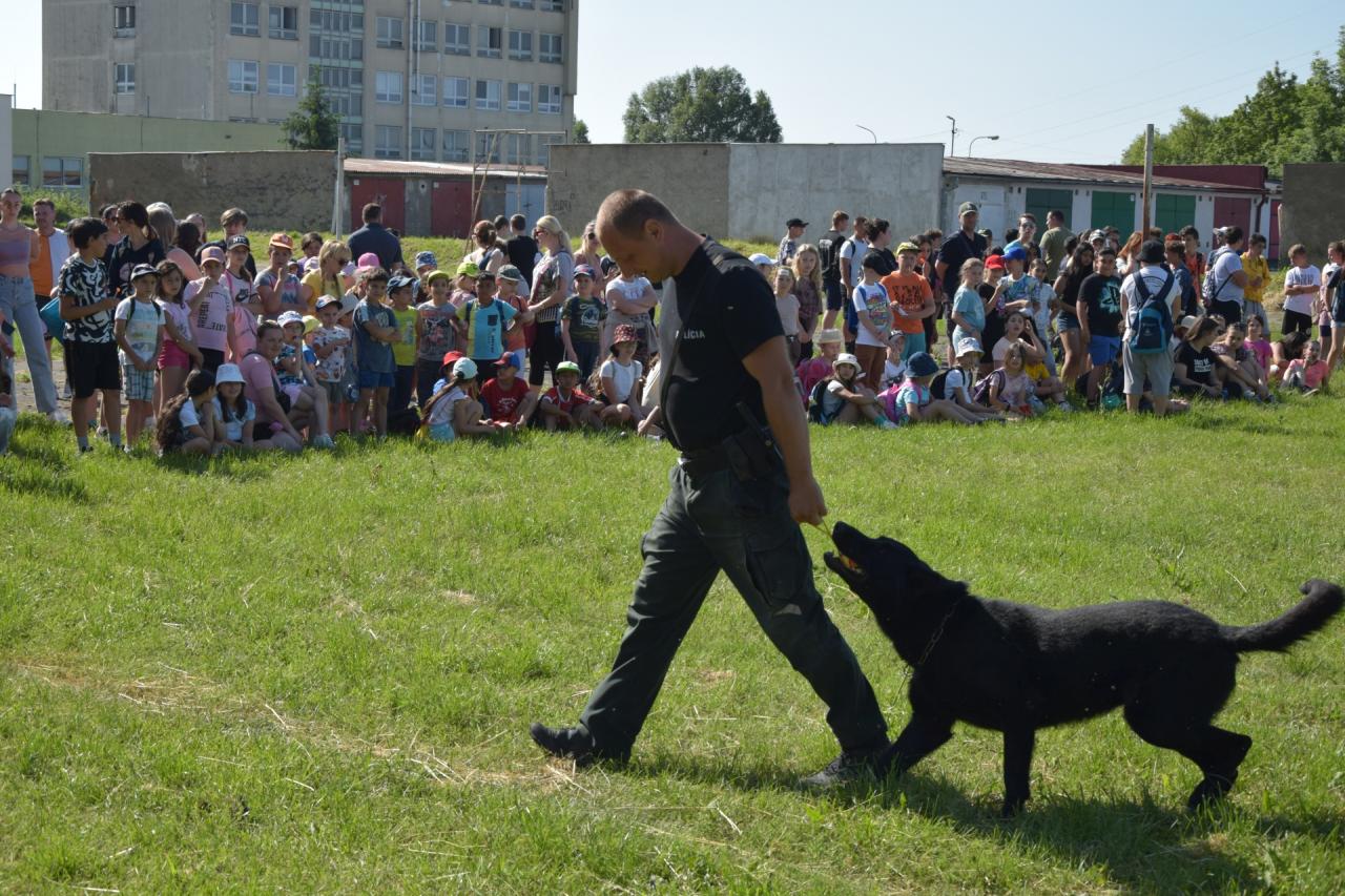 Športové a zábavné podujatie, ktoré mesto pripravilo pri príležitosti Medzinárodného dňa detí, si najmenší „vychutnali“ naplno. Pred „zábavným štvorcom“ sa predviedli hasiči, policajti, červený kríž a kynológ so svojim služobným psom. Ich ukážky sledovali so zatajeným dychom malí i veľkí.