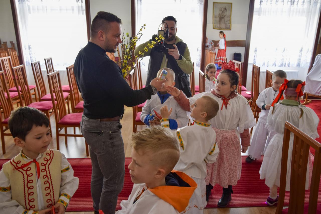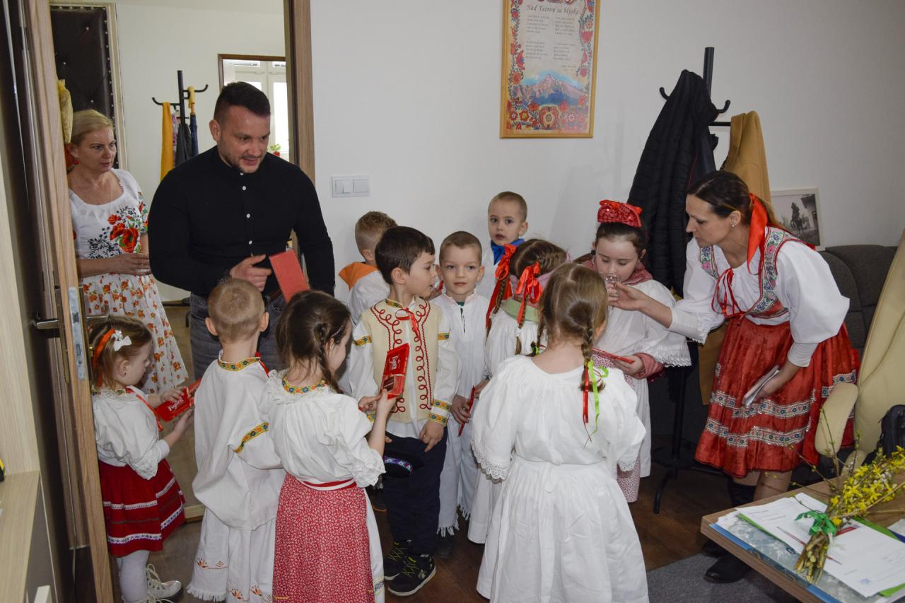 „Priniesli sme vetvičku, aby ste vedeli, že do nášho mesta zavítala jar,“ prišli šťastné deťúrence zvestovať na mestský úrad a priniesli so sebou symbol jari. Za ich krásne ľudové pesničky, veselé riekanky a hry, ich primátor obdaroval sladkosťami.