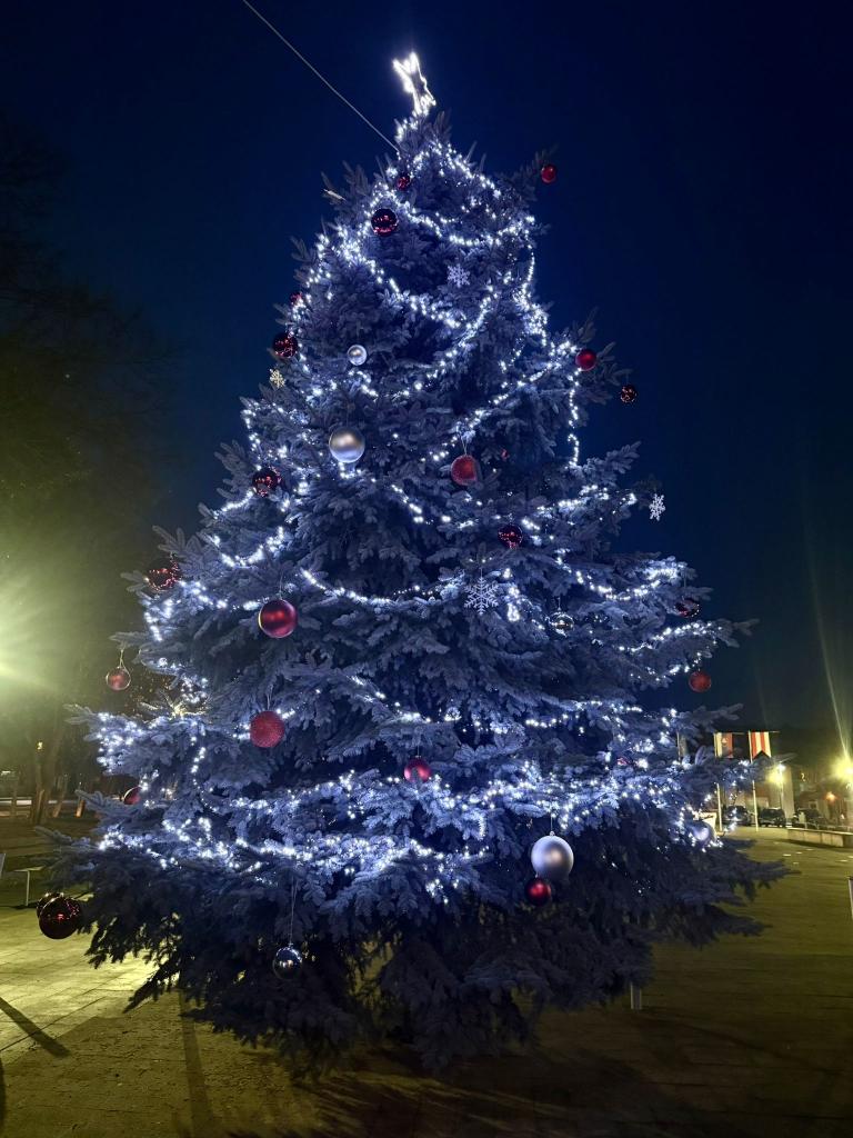 O 16.00 hodine sa sprievod presunul na Námestie osloboditeľov, kde Mikuláš splnil svoju poslednú úlohu dňa - slávnostne rozsvietil vianočný stromček. Spolu s obyvateľmi mesta odpočítal posledné sekundy a okamih, keď sa stromček rozžiaril, sprevádzali radosť a spoločné fotografovanie pri krásne vysvietenom stromčeku.