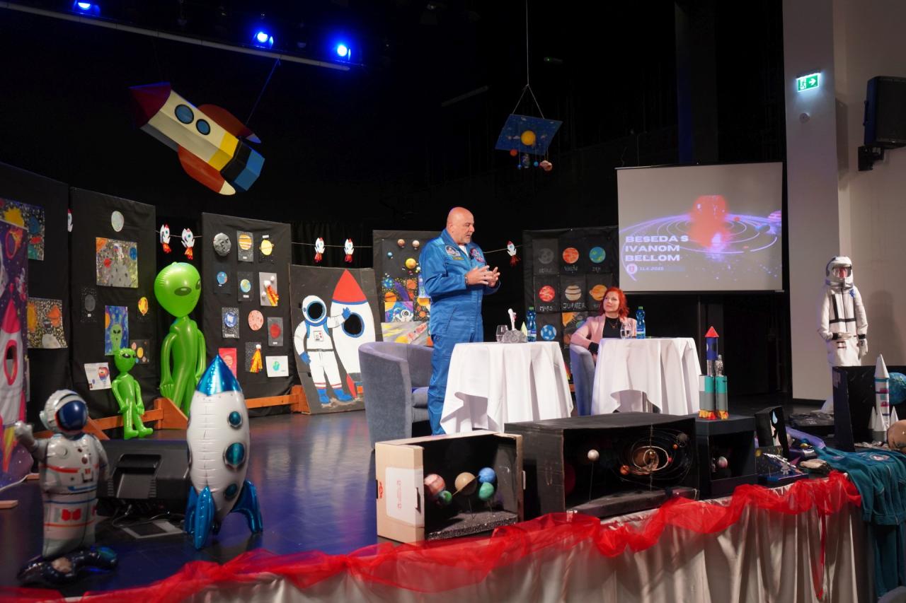 Nasledovala samotná beseda s Ivanom Bellom, počas ktorej rozprával o svojich skúsenostiach z výcviku, o osemdennom lete na orbitálnej stanici Mir v roku 1999, ako aj o tom, aké je to vidieť Zem z vesmíru. Deti sa dozvedeli mnoho zaujímavostí – napríklad ako kozmonauti jedia, spia, či čo všetko musia absolvovať pred letom do vesmíru. Priblížil aj slovenské vedecké experimenty, ktoré vo vesmíre vykonával.