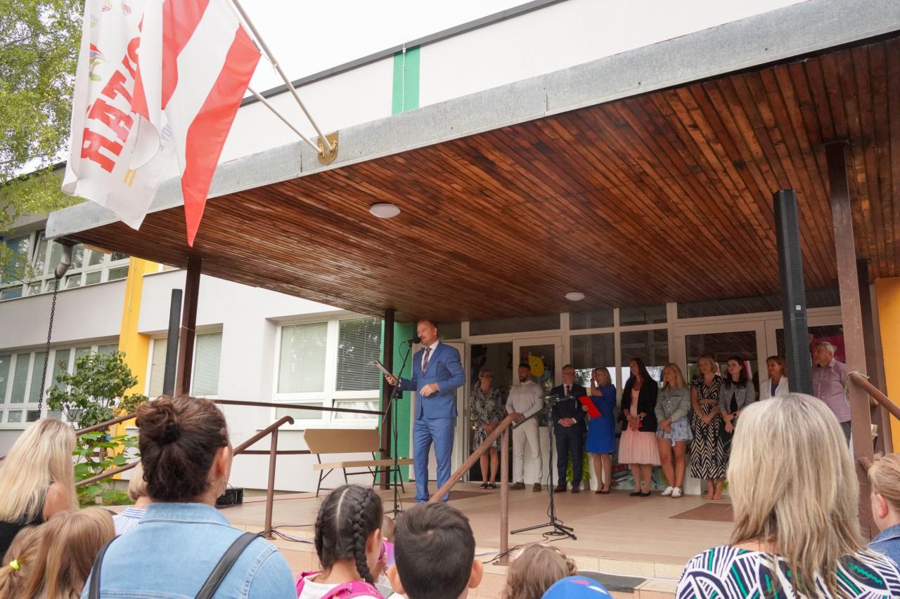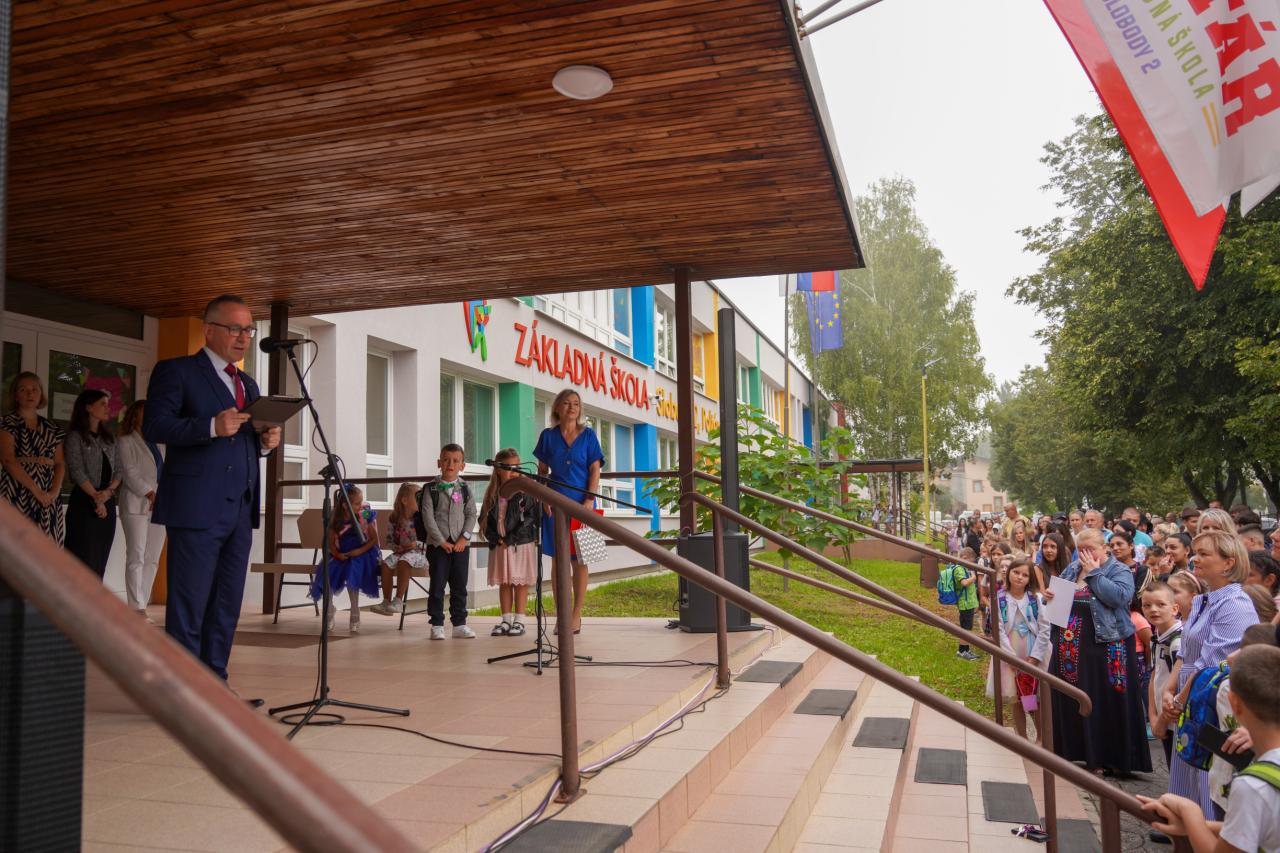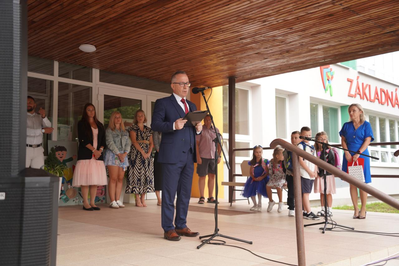 Na ZŠ Školská podobnými slovami a srdečným príhovorom privítal všetkých prítomných a najmä prváčikov aj viceprimátor Pavel Gavalec, ktorý im poprial, aby bol nový školský rok úspešný, pokojný a plný radostných zážitkov.