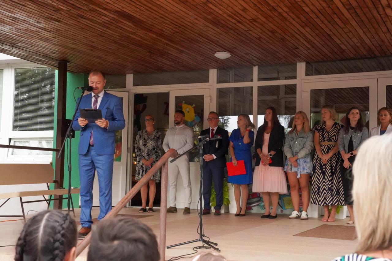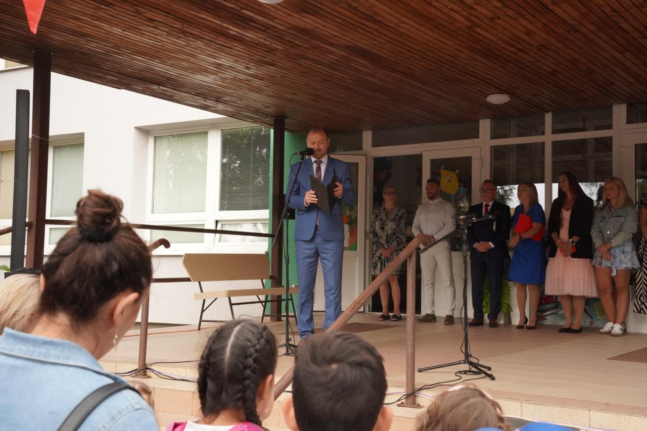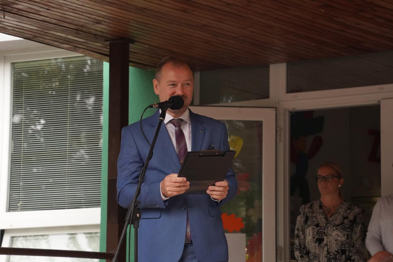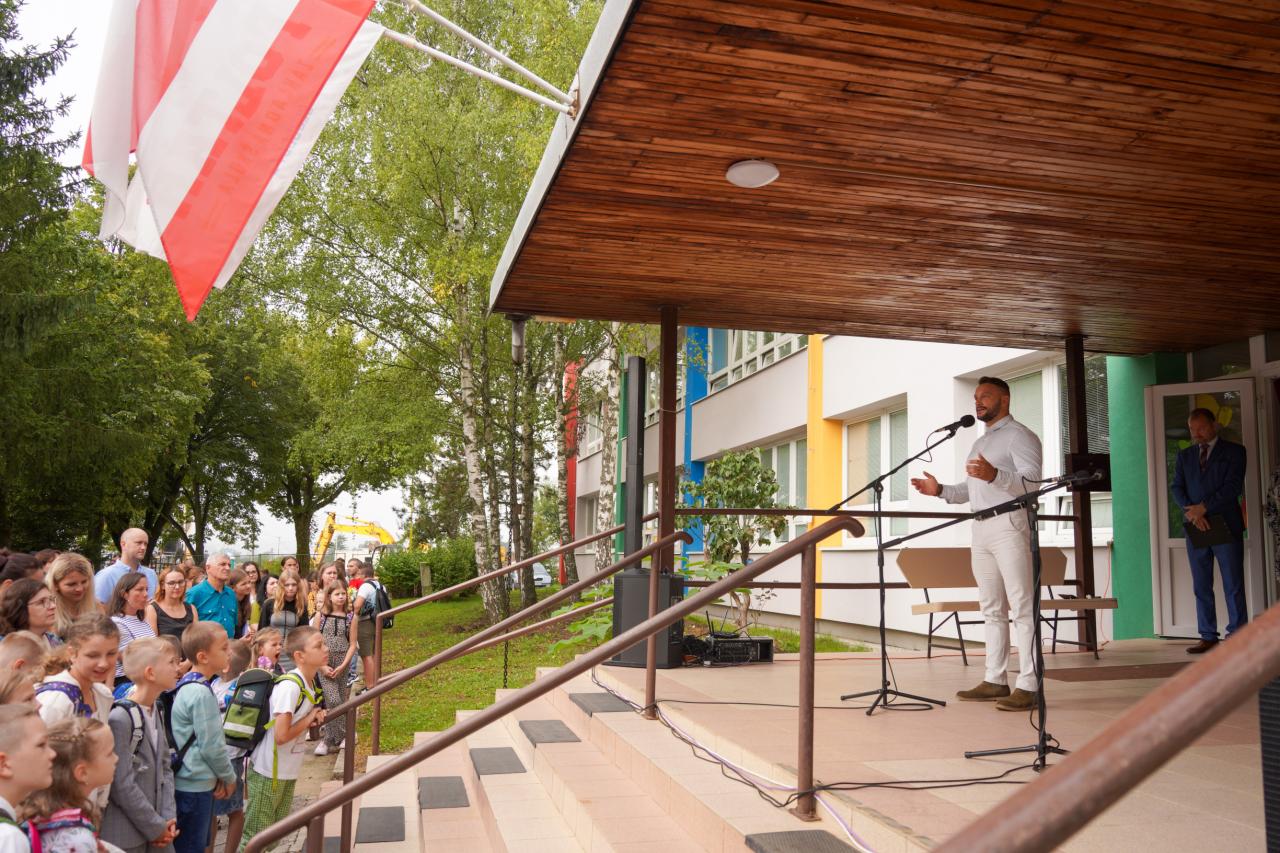 Na ZŠ Školská podobnými slovami a srdečným príhovorom privítal všetkých prítomných a najmä prváčikov aj viceprimátor Pavel Gavalec, ktorý im poprial, aby bol nový školský rok úspešný, pokojný a plný radostných zážitkov.