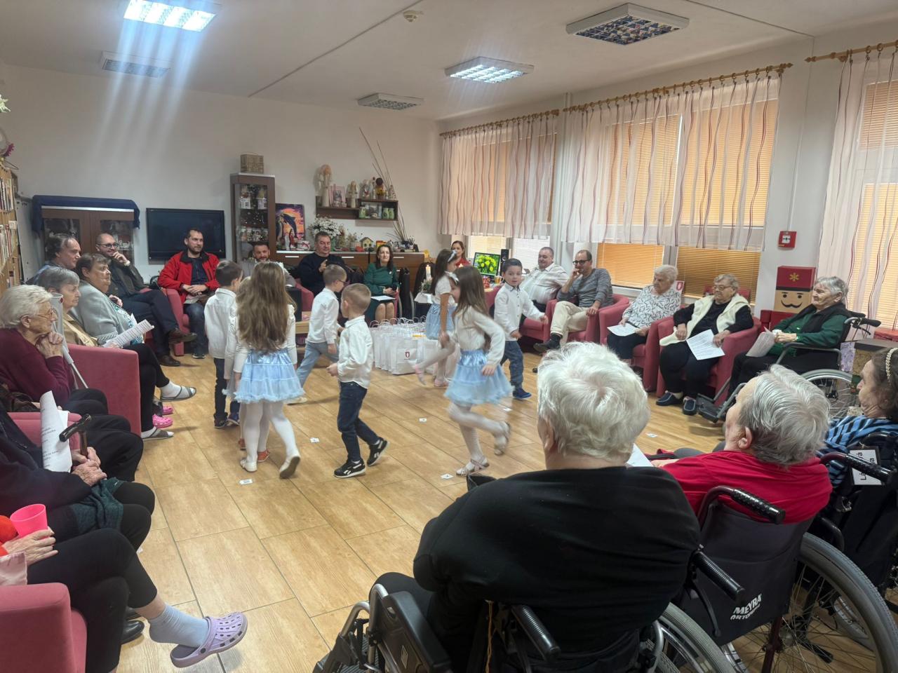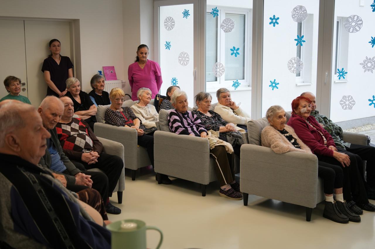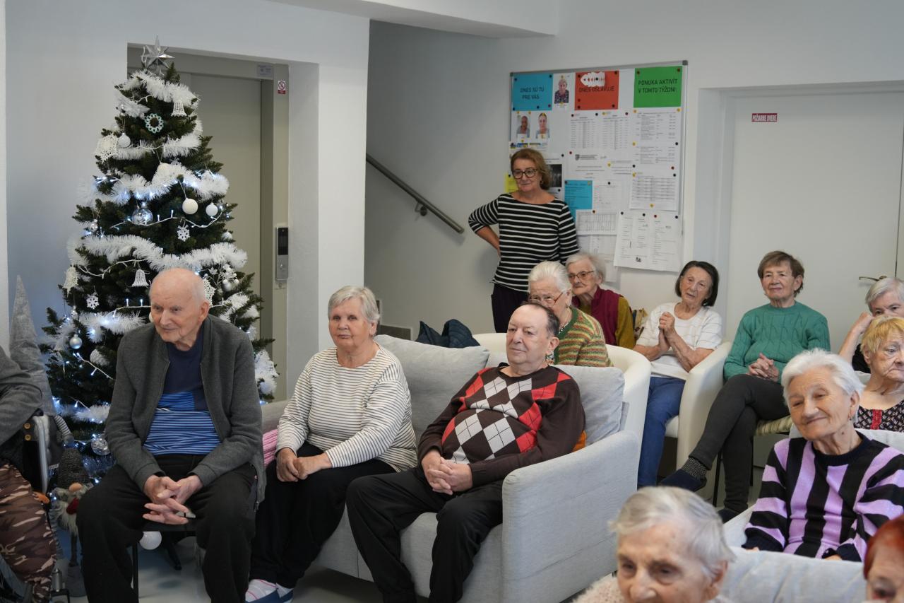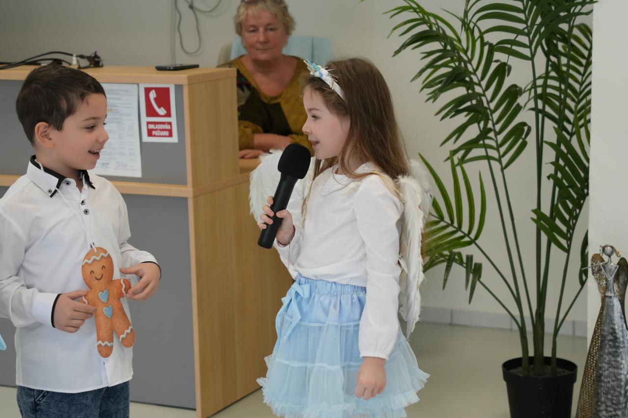 Sviatočnú náladu v zariadeniach ešte viac obohatili vystúpenia detí z Materskej školy Sklárska a Materskej školy Kanadská, ktoré seniorov potešili vianočnými pesničkami a krátkymi vystúpeniami. Detská radosť, spev a bezprostrednosť vyčarili úsmevy na tvárach prítomných a vytvorili neopakovateľnú vianočnú atmosféru.