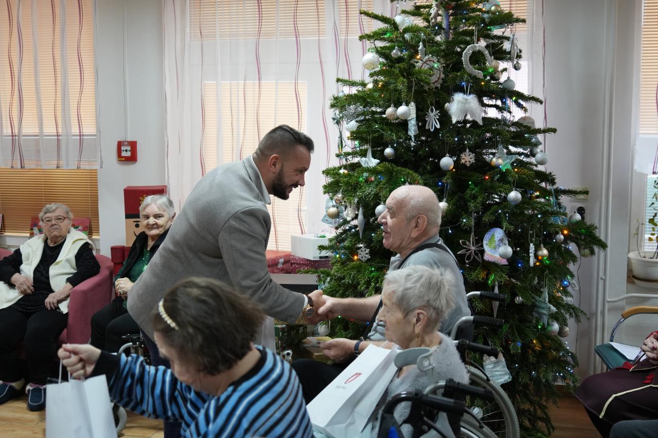 Predvianočná radosť sa však neodohrávala len na námestí. V rovnakom duchu solidarity a ľudskosti sa niesli aj návštevy primátora mesta Petra Sitora v zariadeniach sociálnych služieb. Vo štvrtok 18. decembra 2025 zavítal spolu so svojím tímom do Domova sociálnych služieb TILIA v Slanej Lehote a do Zariadenia sociálnych služieb v Poltári, kde seniorov potešil menšími vianočnými darčekmi.