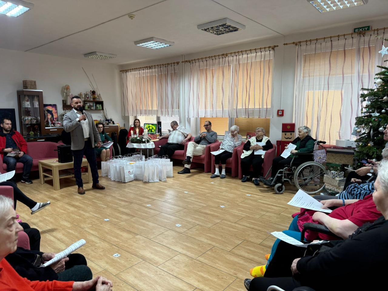 Stretnutia prebehli v príjemnej a srdečnej atmosfére, ktorú umocnili milé slová, osobné rozhovory a úprimný záujem o každodenný život klientov. Každý z obyvateľov zariadení dostal malý darček ako symbol pozornosti a úcty, no ešte väčšiu radosť im priniesol samotný čas strávený spolu.