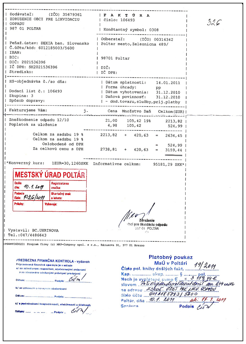 - Zneškodnenie odpadu. Poplatok za uloženie