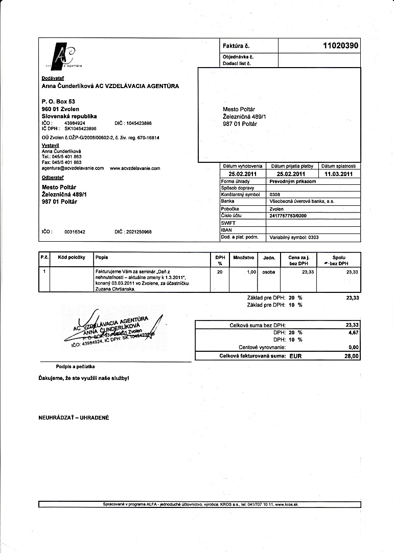 - Číslo faktúry: