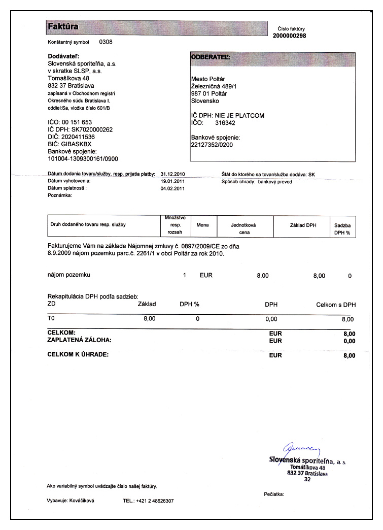 - nájomné za nájom pozemku parc. č. 2261/1