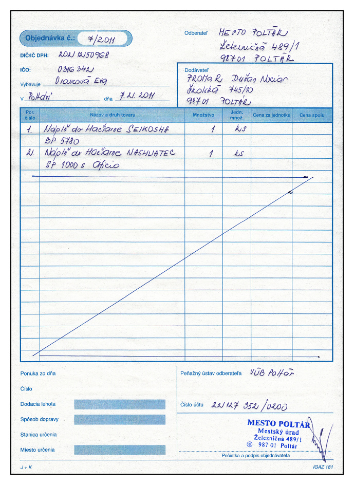 - Číslo objednávky: