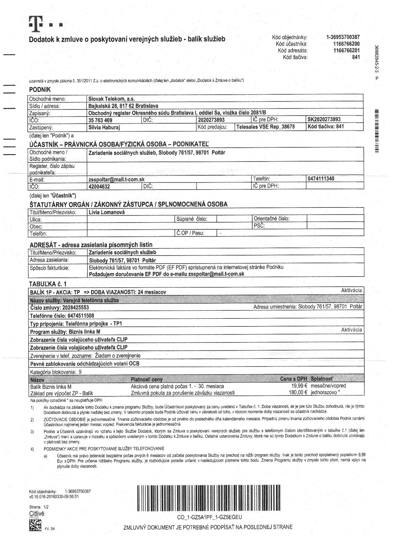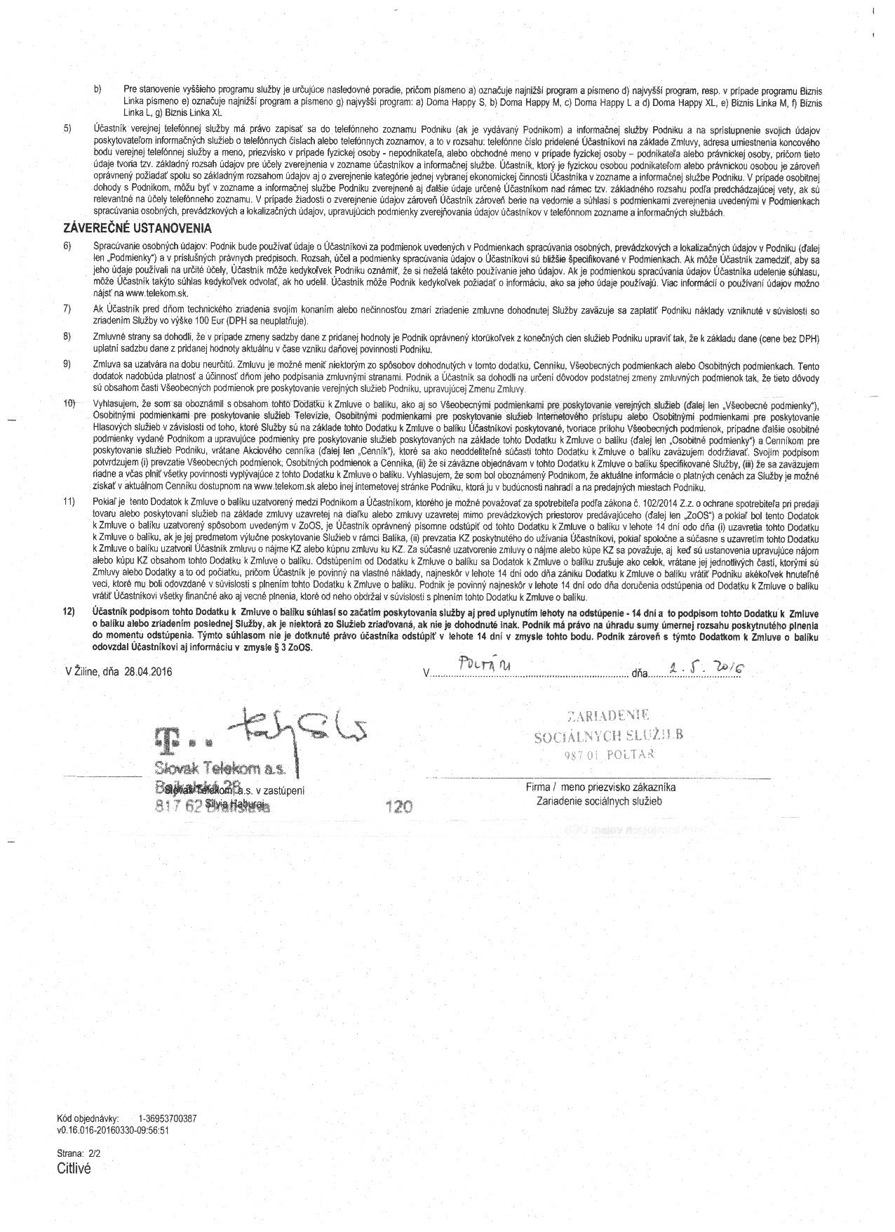 - dodatok k zmluve o poskytovaní služieb